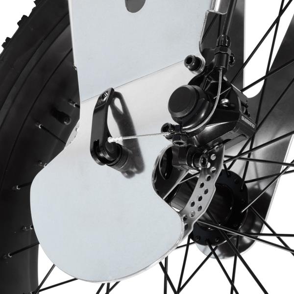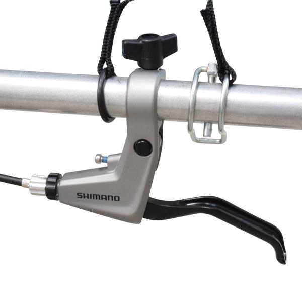 - Shimano™ 机械碟刹,刹车手柄安装在前右手柄(脚侧)