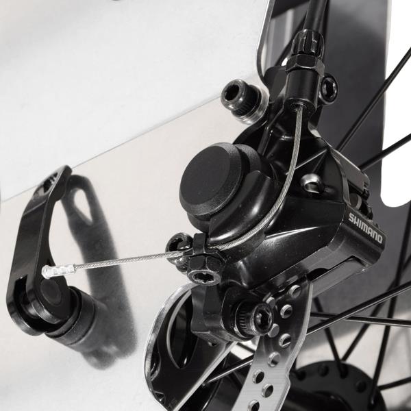 随附的 Shimano™ 机械碟刹可轻松控制较陡的下坡,并在停靠时保持位置。