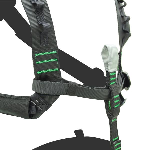 The SMART also allows the chest ascender to be held in place using an adjustable, retractable strap and is equipped with slots for attaching gear holder carabiners.