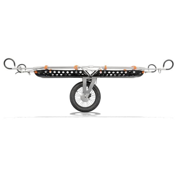 Ruota per barelle 911 Armor e Hive, studiata per agevolare il trasporto su sentiero, brevi salite e discese non particolarmente ripide e in tutte le situazioni in cui non è necessario il trasporto a spalla.