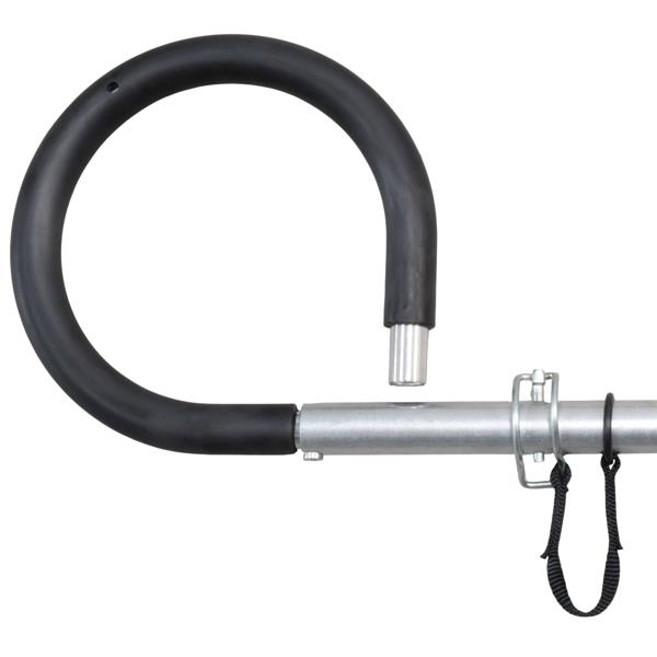 L’impugnatura ricurva riduce la possibilità di perdita della presa e può essere montata e impugnata in molteplici posizioni per adattarsi all’assetto di trasporto e all’altezza dell’operatore, grazie alla nuova coppiglia vincolata al telaio per essere imperdibile.