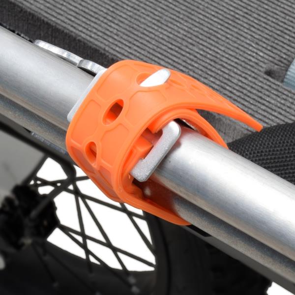 I manici velocemente fissabili al telaio della barella tramite robusti cinturini elastici, agevolano la movimentazione e migliorano la stabilità nei passaggi su terreni sconnessi.